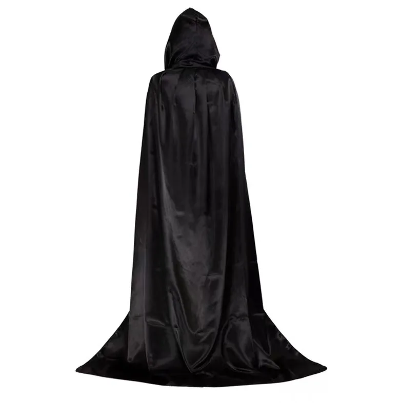 Halloween Masquerad Cloak Hooded Black Robe Witch Long Cape Cosplay Costume Prop Party Performance Supplies Holiday Decoration