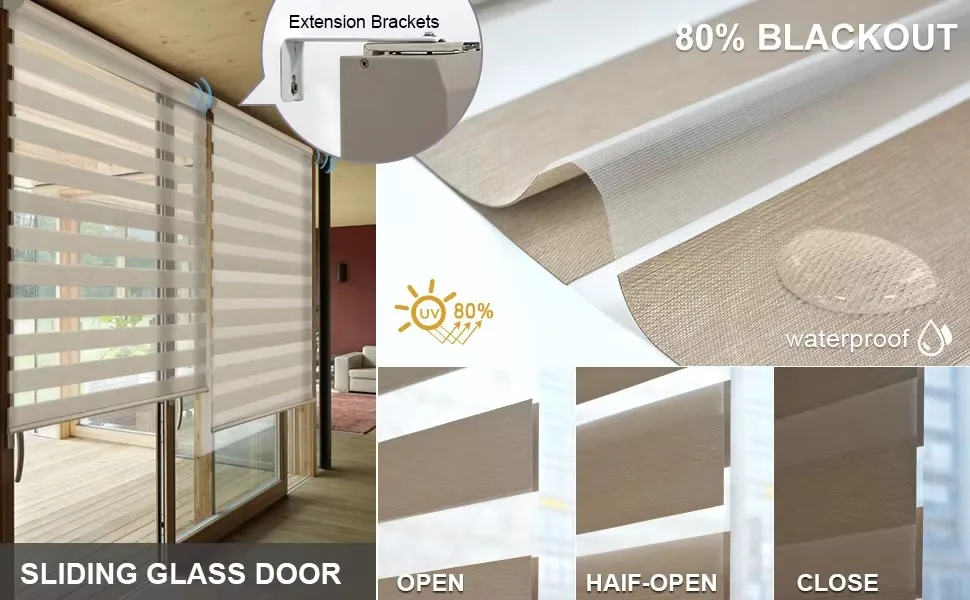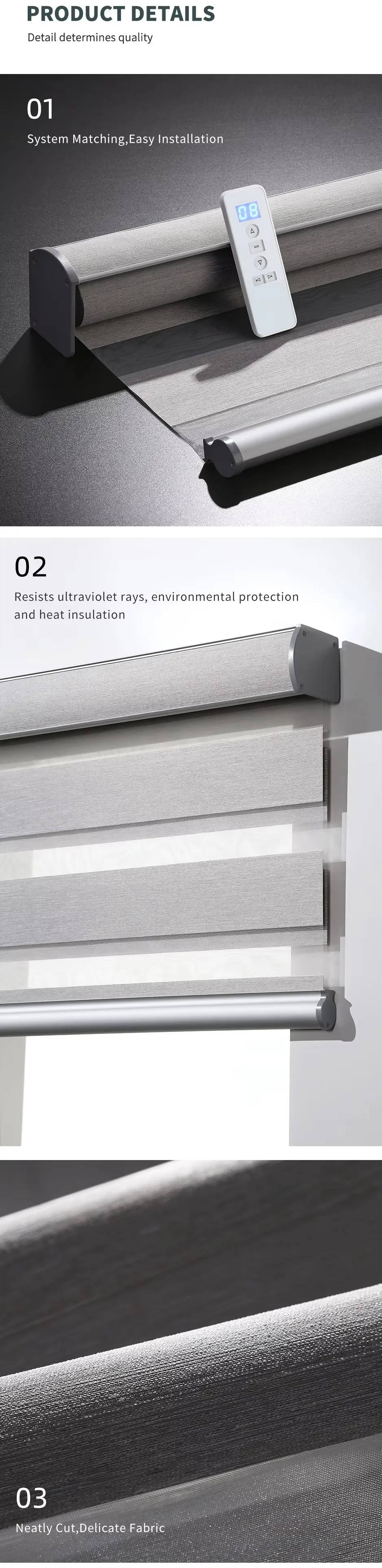 High Quality Waterproof Fireproof Motorized Cordless Remote Control Day And Night Zebra Blinds For Bathroom